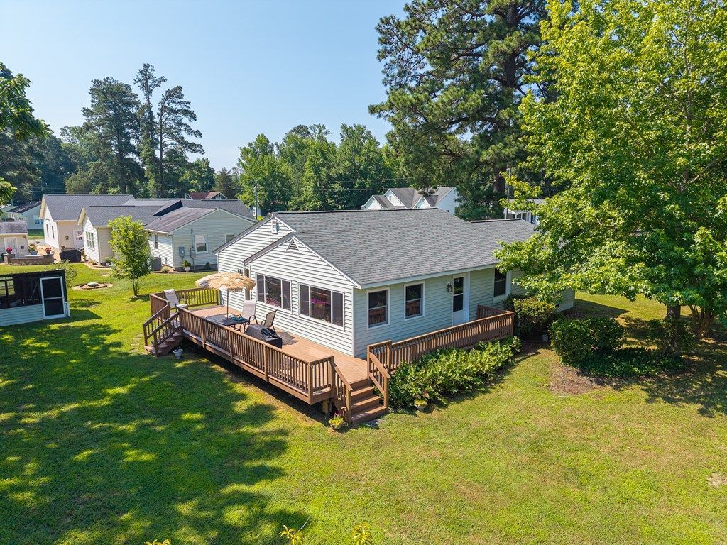 South Hill Banks is a waterfront community in Essex County featuring a wide community sand beach with pier and boat ramp on the Rappahannock. 430 Pine Tree Road offers wonderful views of the River from the deck, family room or around the fire pit. The home features 3 bedrooms and two full baths as well as a large family room opening to the kitchen. There have been numerous renovations and upgrades including replacement windows, a new moisture barrier and dehumidifier in the crawl space (6-25), new roof (2023), HVAC (2025), water heater (2023). The property includes a shed with water and power and a second storage building/garage. Conveniently located only 50 minutes from Richmond, 20 minutes from Tappahannock or Urbanna and 10 minutes from Garrett's Marina. The county taxes the home as a 2 bedroom home but, the Health Department has it permitted for 3 bedrooms. The Community Association has a voluntary $125/year fee to cover up keep of the roads, pavilion, boat ramp and insurance.
